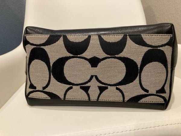 Preowned barely used genuine Coach Legacy Signature black & white fabric and leather Hobo Duffle Bag L1221-21149 with silver hardware in pristine condition. Large and roomy with zip top closure, convertible adjustable strap for crossbody or shorten for shoulder wear, leather tassels, back zipper pocket, gray fabric interior with open interior and a zip pocket and Coach dust cover bag includes. Condition is 9 out of 10, no nicks, wear, marks or tears. Cash and pick up only.