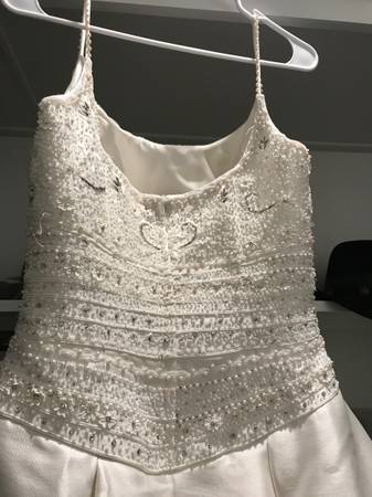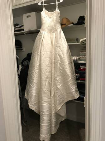 If you have specific questions, just ask and I'll see if I can help. It was professionally dry cleaned and sealed in a new airtight box which was shrinkwrapped after one use. The box was still in perfect shape as it has been stored in our house in a spare bedroom since then. I opened the box myself for the first time to take pictures of the dress this week. Comes with veil, as shown. I'm listing this for my wife, so let's talk before about the sizes etc to make sure it will work for you size-wise (no label size listed...going from my wife's memory.)