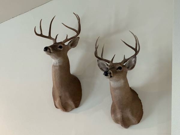 Two professionally done, taxidermist quality Whitetail shoulder mounts as shown in photos. Always kept in the house and always non-smoking.