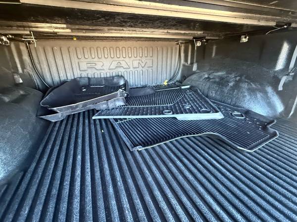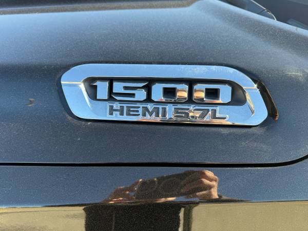 2019 RAM 1500 Laramie — HEMI 5.7L V8 (395 hp / 410 lb-ft). Factory-equipped with an 8-speed automatic transmission, premium leather-trimmed interior, power-adjustable front seats with memory, heated front seats, dual-zone automatic climate control, Uconnect infotainment with large touchscreen, Apple CarPlay/Android Auto and Bluetooth, rearview camera, electronic stability control and multiple airbags, chrome exterior trim, alloy wheels, trailer tow package with integrated brake controller, bed lighting and cargo tie-downs. Exterior: Diamond Black Crystal Pearl Coat / Billet Silver Metallic Clear Coat. Interior: Black. Excellent overall condition with a clean CARFAX report.