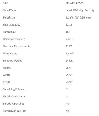 • Super micro-cut model (4014-2 SMC in US / 4005 SMC in Canada) meets all NSA/CSS specifications and is DOD-approved