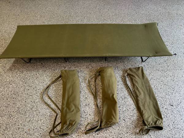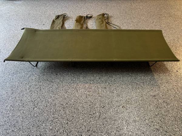 3 camping cots & carrying bags in good condition. Heavy duty canvas. 69” x 24” If you see the ad, I still have them.