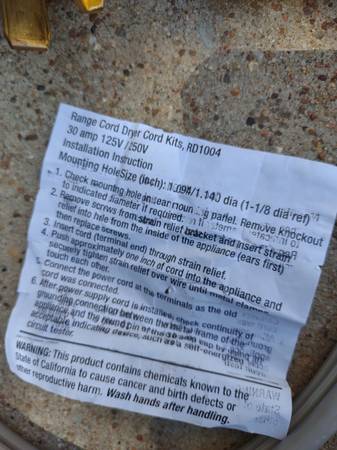 range cord dryer cord- 5 ft- new working perfect - general for sale...