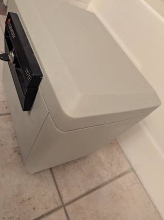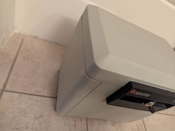 Security and fire protection. Includes the key. See last picture for specs. 28 lbs. 13.6" H X 15.3" W X 12.1" D.