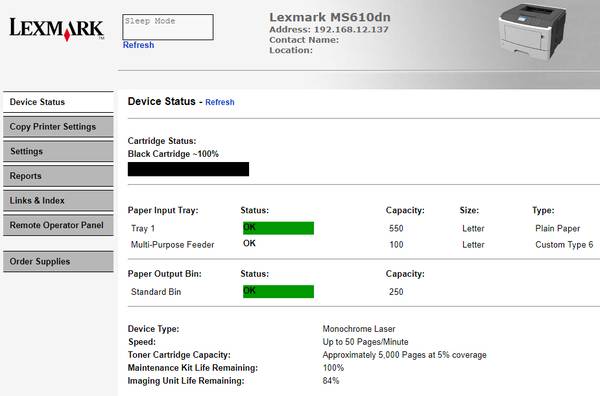 Lexmark MS610dn Printer Excellent Condition PlusNew Fuser Kit, New Maintenance Kit, and New Toner Cartridge Very Low Usage New Toner Cartridge , 5,000 page Capacity, 100% Remaining New Maintenance...
