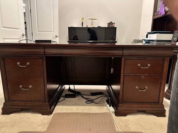 Havertys solid writing desk in excellent condition. It's very sturdy and compares to https://www.havertys.com/products/product-page/baylor-executive-desk.