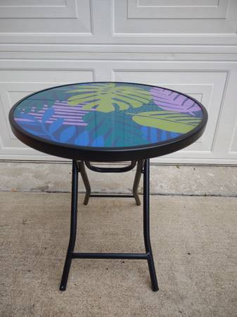 18" Outdoor Side Table, Small Patio Table with Tempered Glass Tabletop, Steel Frame, Round Folding Table with Anti-Slip Footpads for Outdoor and Indoor