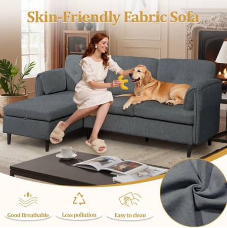 Convertible Sectional Couches, 79" 3 Seat L Shaped Couch with Storage Chaise, Linen Upholstered Convertible Sofa Couches, Small Couch for Living Room, Apartment and Small Space