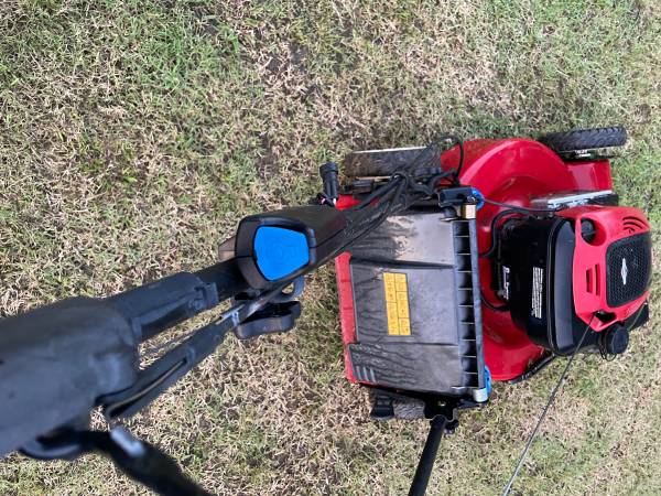 Push button electric start, side or rear discharge mulching mower. Powerfull 7hp Briggs and Stratton motor starts easy. everything works as it should. just serviced, fresh oil and blade sharpen and tune up. has deck wash port.