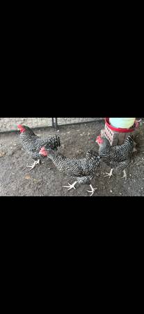 1 year old laying hens for $15. Have to buy 5 at a time. Selling the fed my flock.