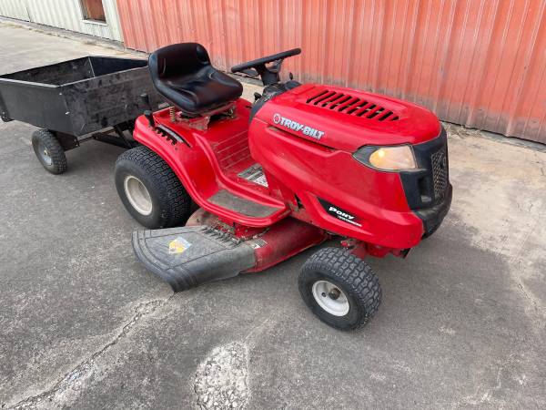 Troy Bilt Riding Lawn Mower 7-Speed transmission 42-in twin-blade. Trailer Included