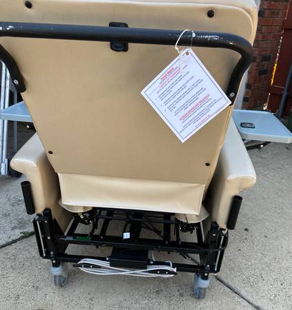 Hospital chair with trays on both sides. Electric seats up to 500 pounds. Like new