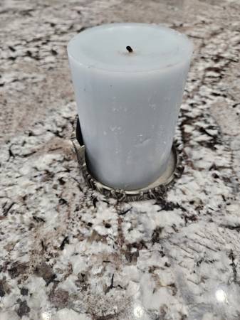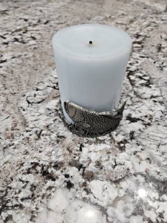 BLUE PILLAR CANDLE WITH SILVER PEWTER FISH CANDLE HOLDER FOR SALE FOR $28 - Blue Pillar Candle with Silver Pewter Fish Candle Holder is technically Brand New. I did light the wick as it is supposed to be good luck to just light the wick and blow it out before gifting the Candle. I didn't end up gifting the Candle and am selling it instead.