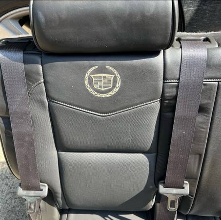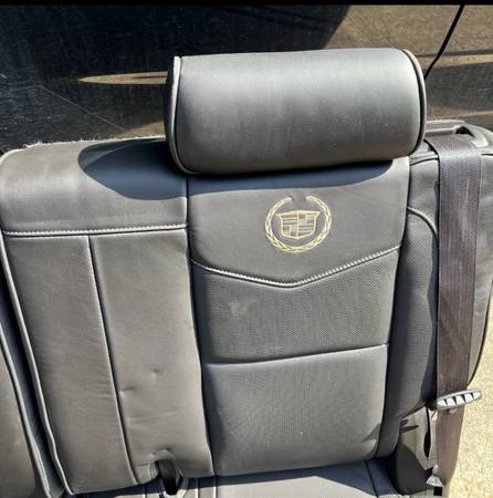 The product is a set of black leather 3rd row seats designed specifically for the 2007-2014 Cadillac Escalade Platinum Edition. These seats are OE spec, meaning they are a direct replacement for the original seats, ensuring a perfect fit. Made in the United States, these seats feature a split bench design with headrests, providing comfort and support for passengers. While they do not come with a manufacturer warranty, they are a genuine OEM product from Cadillac, ensuring quality and durability. This set of 3rd row seats is a valuable addition for those looking to upgrade and customize their Cadillac vehicle.