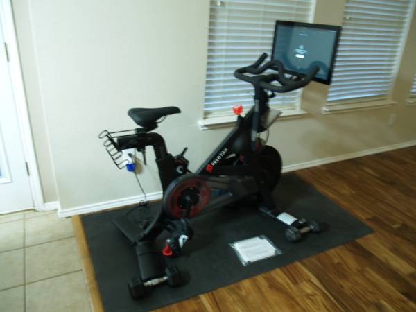 Peleton bike barely used. Weights, mat, tools and instructions included. Also available upon request...Peleton shoes sizes 36 cm, 38 cm, & 40 cm. heart monitor, and yoga bands. Local delivery...