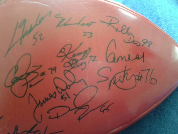 Also from my research, I believe this is from 2003. There are a lot of signed football's out there, but not one with the Coach's and Player's. Mostly all the coach's are there except for two and four or five player's. There are three player's from 2002, including Jake Plummer. I have included a list of coach's, player's that I found on the football. Call David @ show contact info