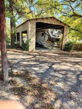 Private, not in a park place to park and live in your R. V. Completly covered 40 / 24 concrete slab with 2 car carport. One person, perfect one small inside pet ,bills paid, fenced and Huge trees.