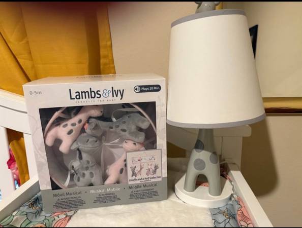 -Crib & Changing Table (new-put together but never used) Includes mattress and bedding set, lamp, and musical mobile