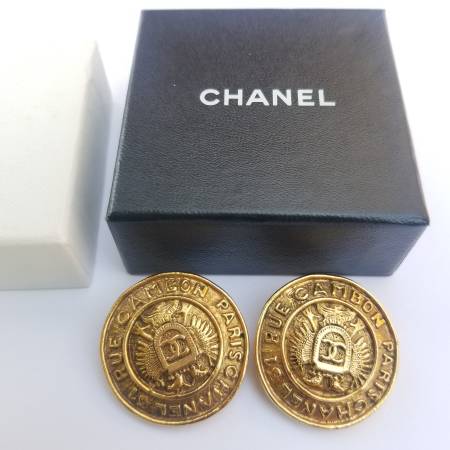 This gorgeous earrings have so much detail and style . Beautifully designed and constructed, features Crest details with Chanel Rue Cambon engraved on heavily gilded gold tone . That gold tone lasts a lifetime as chanel pieces are known for.