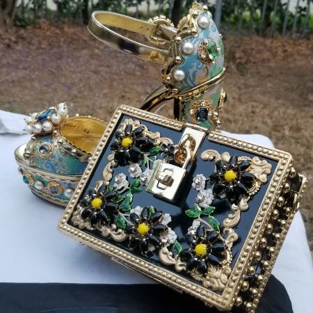 This stunning little treasure is reminiscent of an enchanted forest, beautiful 3 D foral details with baroque style gold tone trim.