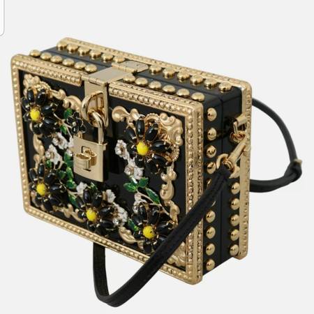 $5200 Absolutely stunning, 100% Authentic, Dolce and Gabbana D&G Rare Runway Haute COUTURE Plexiglass enchanted 3D floral foliage crystals embellished padlock Black and Gold Box purse clutch shoulder crossbody handbag