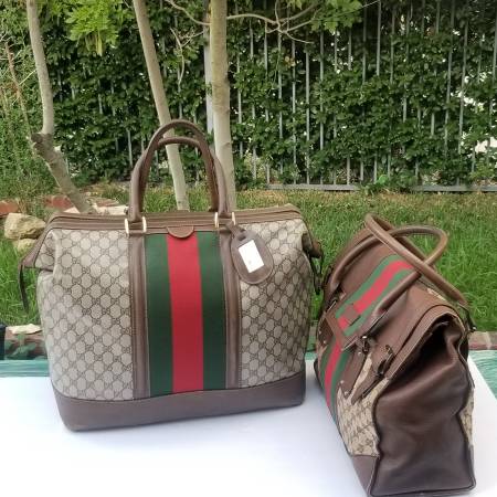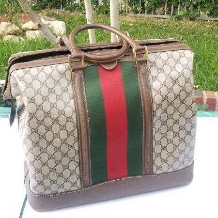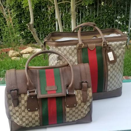 1.) Wonderful very collectible Authentic Vintage Gucci GG web designer travel suite Train case luggage