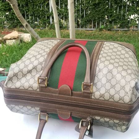 2.) Vintage Authentic Rare Gucci Supreme GG Web Boston MiniDuffle travel leather XLarge handbag