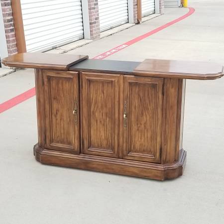Wonderful Vintage Drexel Heritage Grand Tour Campaign Dark Walnut Slide Top Server Buffet Bar / Tea Cart Server Entry way centerpiece.
