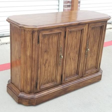 Great pre-owned vintage condition with some light surface scratches and scuffs along bottom edges mostly. This awesome piece is built to last. Easy to move about as it has encased casters for easy mobility.