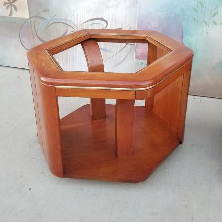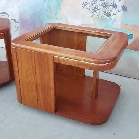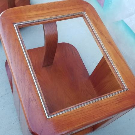 Pair of vintage curved Wood shaped glass top side Tables - furniture...