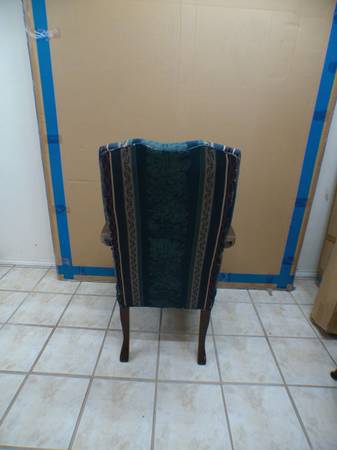 Elegant reading chair. It can go in the library, reading nook , bedroom or in front of a writing desk. About 25"W, 27"D and 42"H. Cash and carry only, thanks. No scammers, no six-digit codes, no...