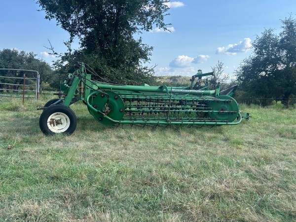 John Deere 705 Baler Connection rake. Rake and bale all in one pass, currently wired for a 468 baler, would work with 467-469. Does need a few teeth but it is field ready and has been used all...