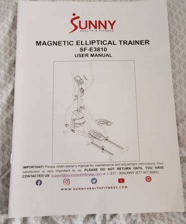 Start a powerful in-home workout routine with the Sunny Health & Fitness SF-E3810 Magnetic Elliptical Trainer. Step onto the stylish textured footplates to secure your balance as you glide along the sturdy rail. Enjoy the anti-slip footplates that keep your feet level as you perform 18-inch strides. Activate muscles in your chest, shoulders, and arms while you grab the full-motion handlebars. Increase the intensity of your strides with 8 levels of magnetic resistance with a turn of a knob. Undertake a challenging workout when you engage the internal flywheel with the smooth, quiet, and virtually maintenance-free belt-drive mechanism. Designed for vigorous workouts, this exercise machine can support up to 220 lb. Grab onto the pulse sensors to keep track of your heart rate while you exercise. Engage with the battery-powered exercise machine to keep track of your time, distance, speed, calories burned, and heart rate. Mount, your favorite smart devices on the onboard tablet holder. Keep this elliptical machine steady on a variety of in-home surfaces with adjustable levelers at the base of the machine. Use the front-loaded transportation wheels to move this machine from room to room around your home.