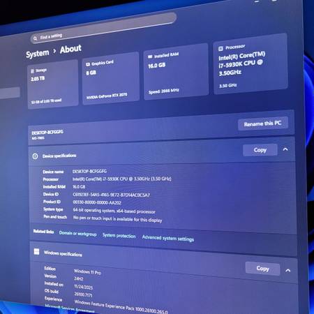 • Intel Core i7 CPU Processor @ 3.8ghz