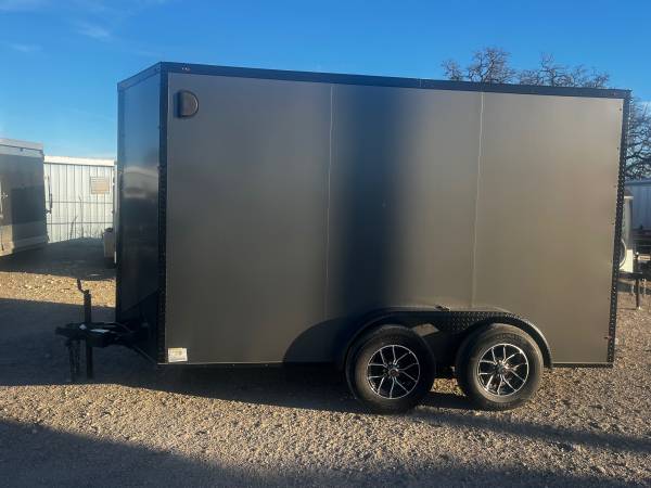 New 2026 DeepSouth 6'x12' & 7' tall Screwless Polycore exterior Enclosed cargo trailer, 2-3500# axles with electric brake on rear, rear ramp rated at 3500#'s, mag aluminum wheels, vnose, 3/4"...
