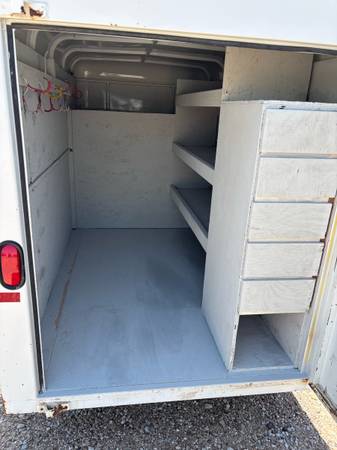 I built shelves inside for tools. I even freshened them up for you with a fresh coat of gray paint. If you are a framer, tile man, trim guy or any kind of contractor…this is your trailer. Protect all your tools. It has a 2” bulldog hitch.