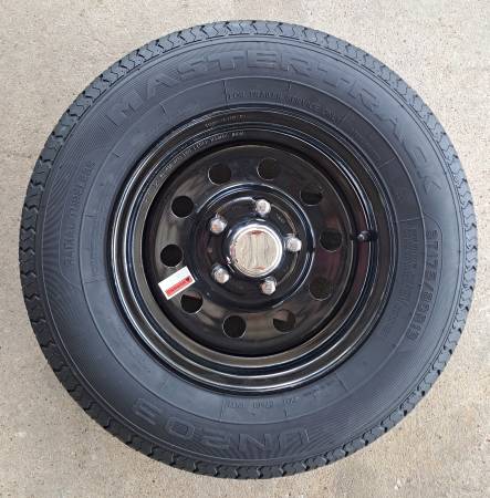 13" Mastertrack Trailer Tire 175/80/R13C on 13x4.5 5 Lug Black Mod Trailer Wheels Carry out price: $110 each Install on trailer $5 each I have a huge selection of trailer tires and wheels Chrome...