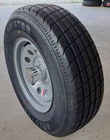 14" Gladiator Trailer Tires 205-75-14D 8 Ply on 14x5.5 5 Lug Silver Mod Wheels Carry out price: $140 each Install on trailer: $7.50 each I have a huge selection of trailer tires and wheels Chrome...